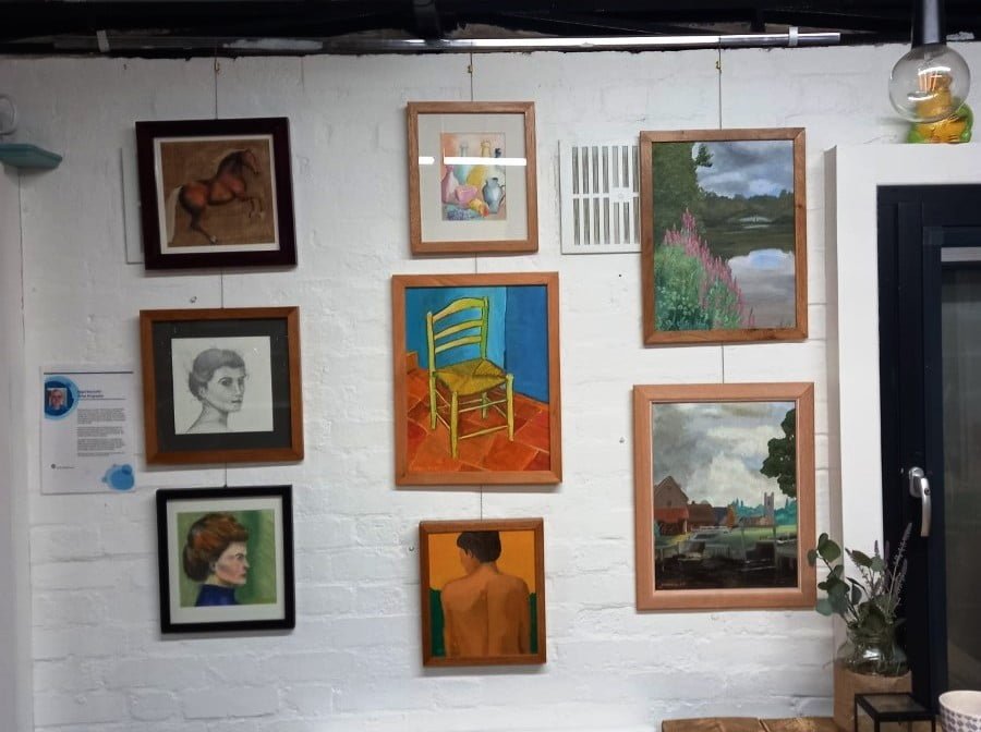 To mark people being able to go inside Humphry’s again, we have arranged a new joint exhibition at Humphry’s. It features some lovely work by local people with some paintings by Nigel Reynolds and a display about Ian Brown’s new children’s book, Albert Upside Down.