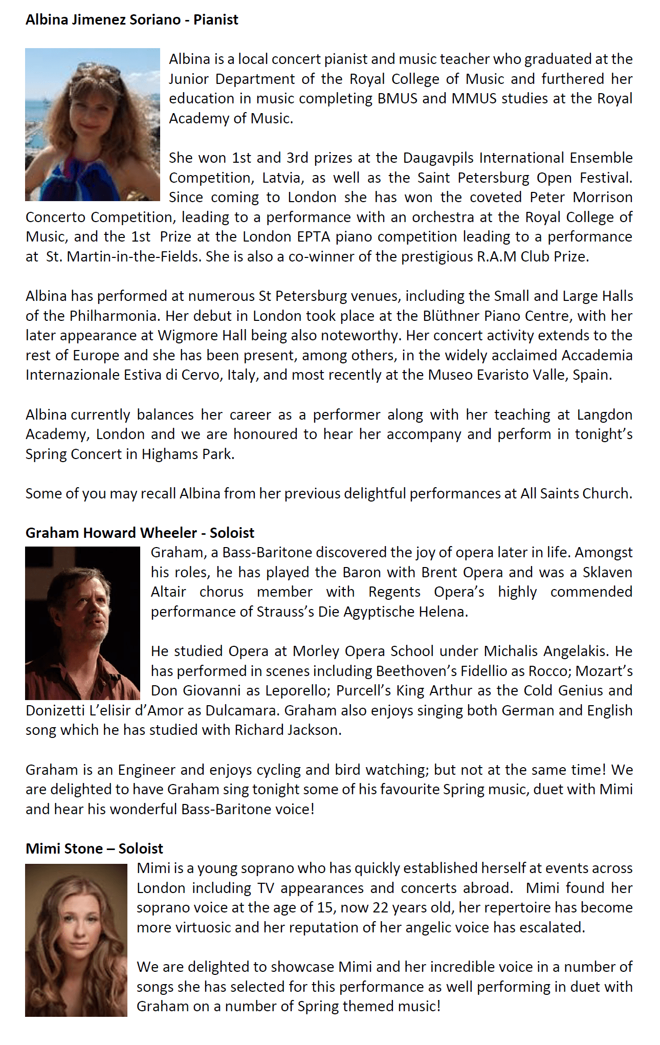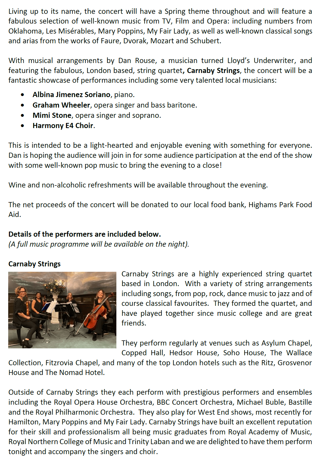 Welcome to the events page of the The Highams Park Spring Spectacular Concert